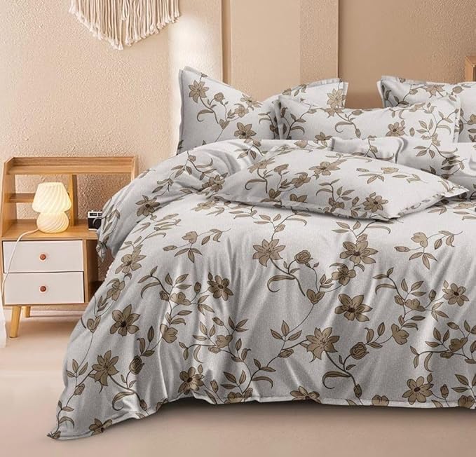 WSOKO COTTON 400TC Premium WSOKO Cotton Printed Super King Size Double Bedsheet with Two Pillow Covers, 108 * 108 Inches or 9ft by 9ft or 275 cm x 275 cm (Brown Floral)