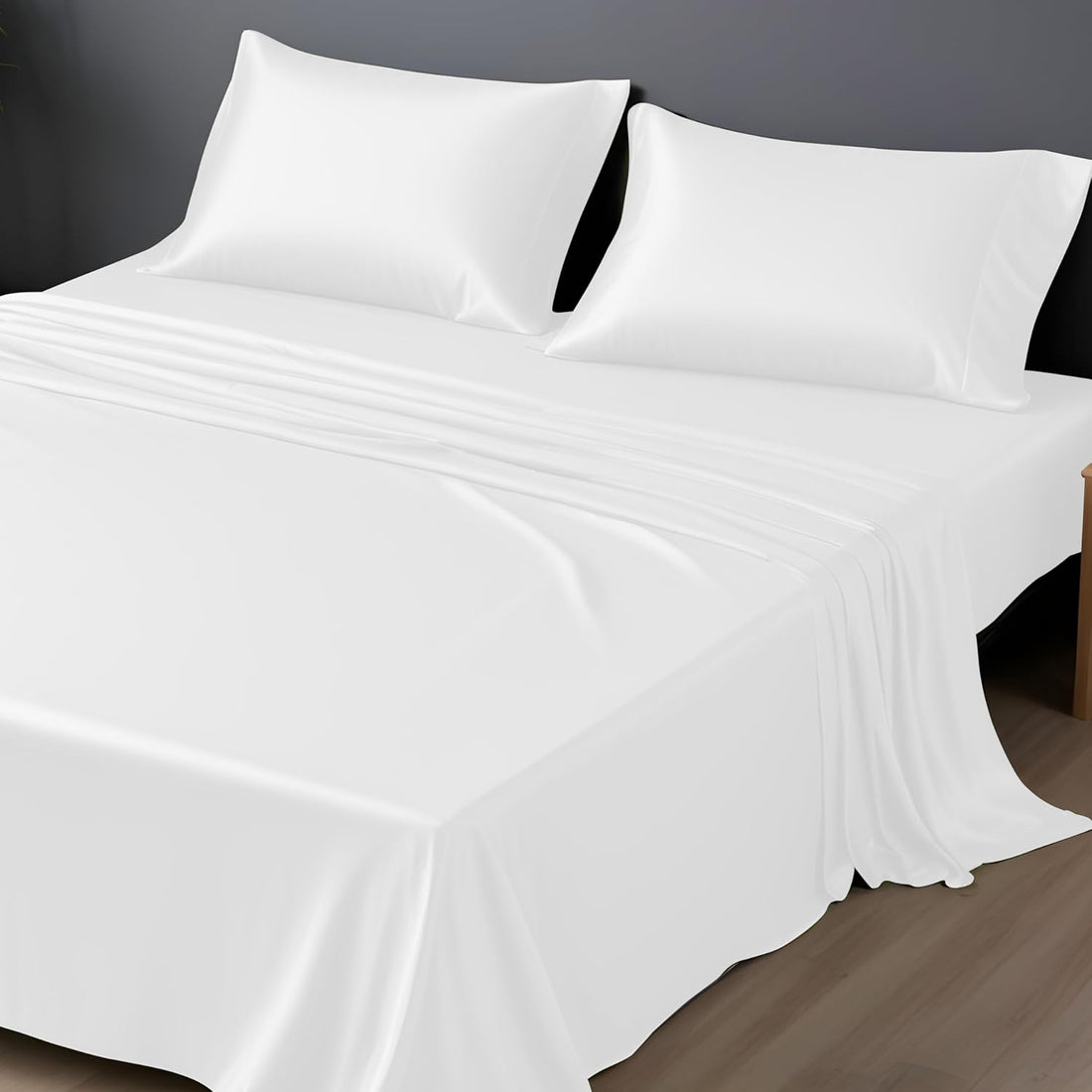 Satin Bedsheet - Double Bed with Pillow Covers, Vanilla White - WSOKO