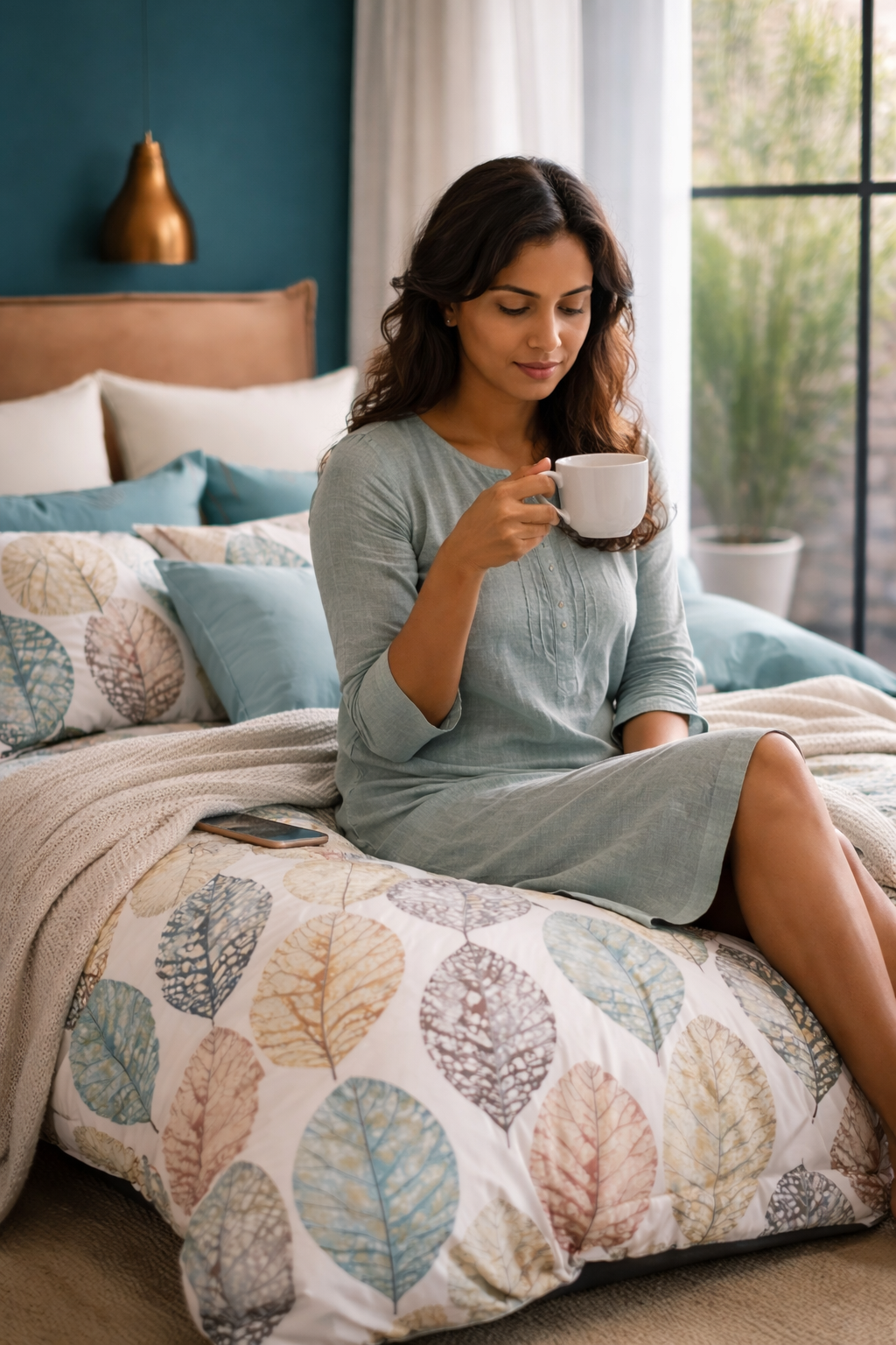 The Super King Size (108x108 inches) ensures full coverage for your bed, giving a neat and elegant look to your bedroom. The set comes with 2 matching pillow covers, enhancing the overall aesthetic.