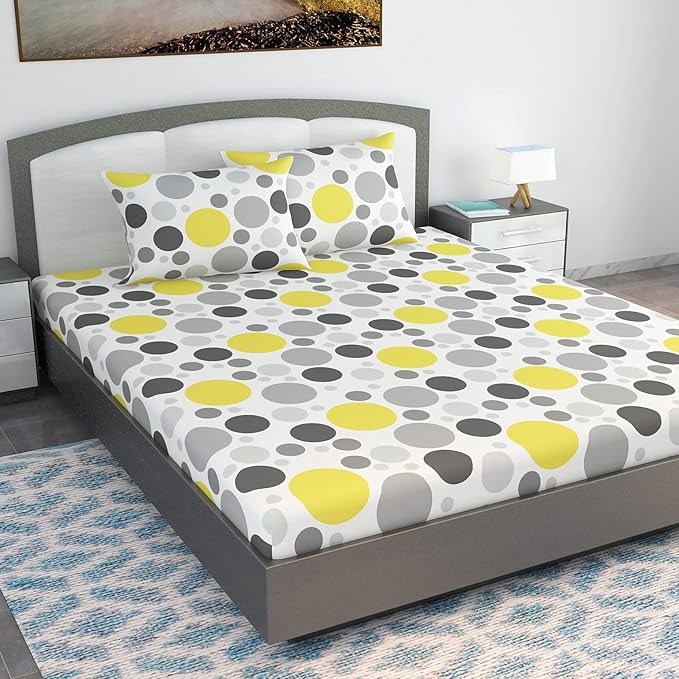 Package Contents: 1 King Size Bedsheet with 2 Pillow Covers | Perfect Fit for King Size Beds: 108x 108 inches or 275x 275 cm or 9 ft x 7 ft, Pillow Cover: 18 x 28 inches or 46 x 71 cm.
