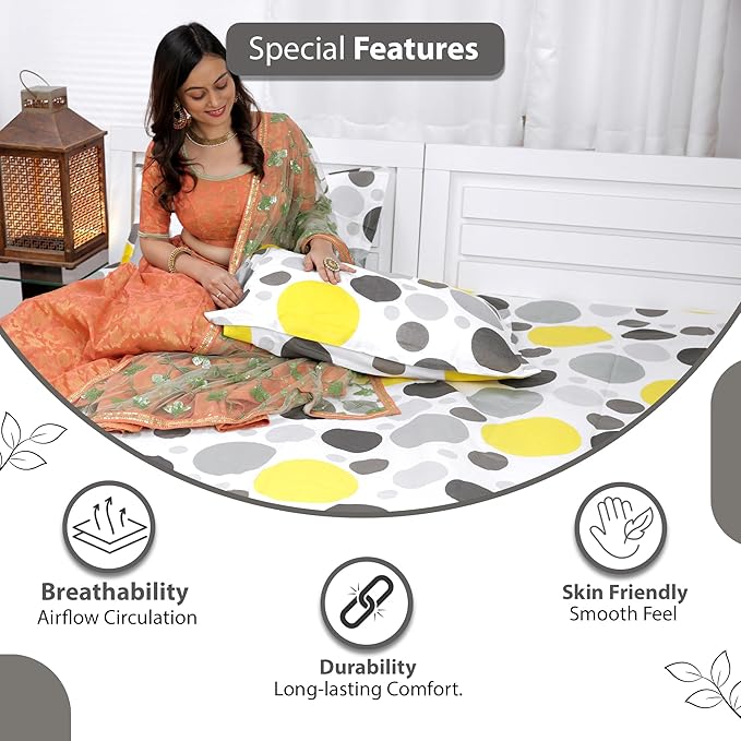 100% Cotton Fabric: Our bedsheet for king bed is crafted from quality cotton, providing a soft and soothing touch that's perfect for sensitive skin, ensuring your comfort throughout the night.