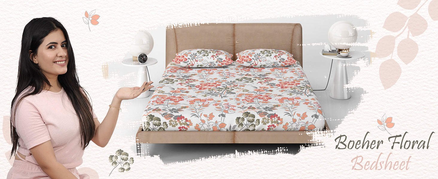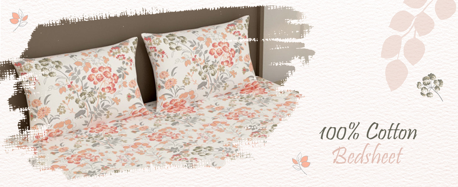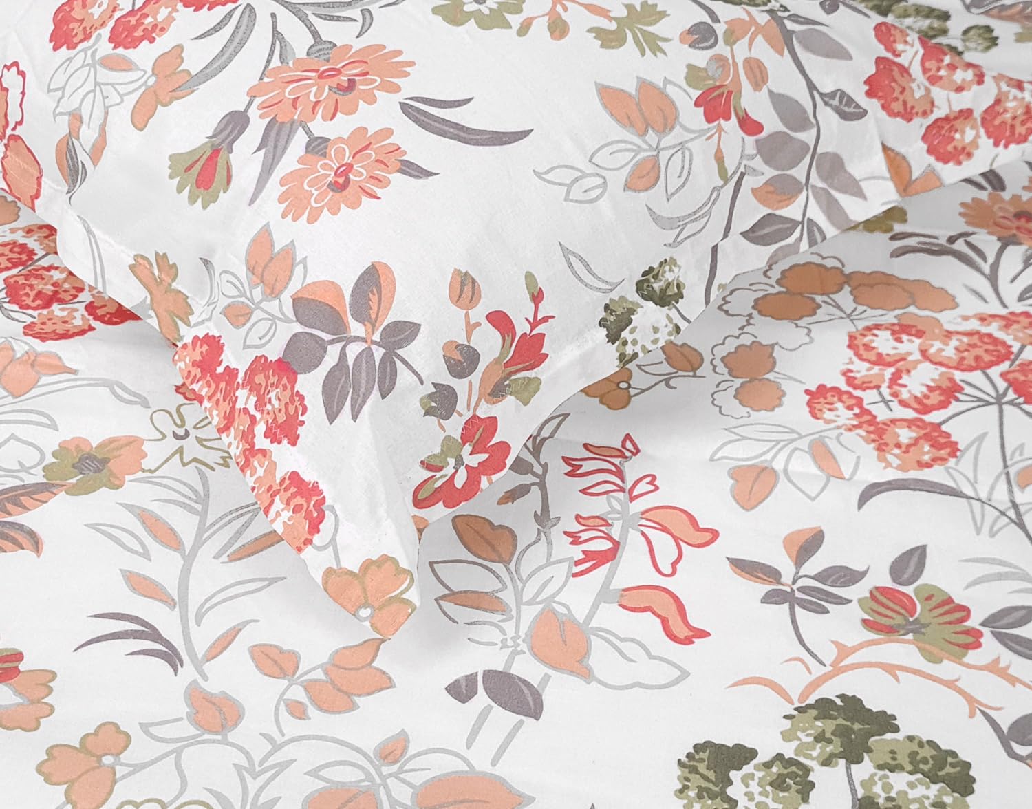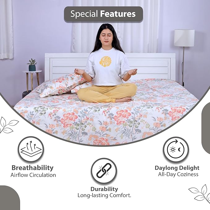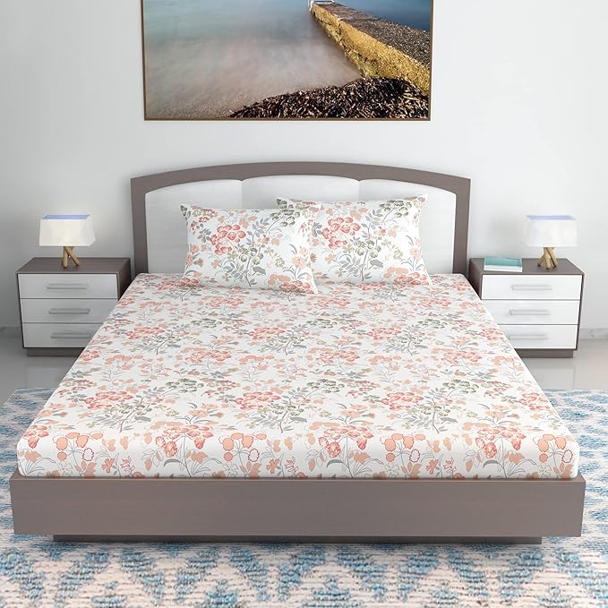 WSOKO 100% Cotton 400TC Bedsheet for Double Bed King Size Bedsheet with 2 Pillow Covers[108X108 (Size:275 X 275 cm, Green, Floral)