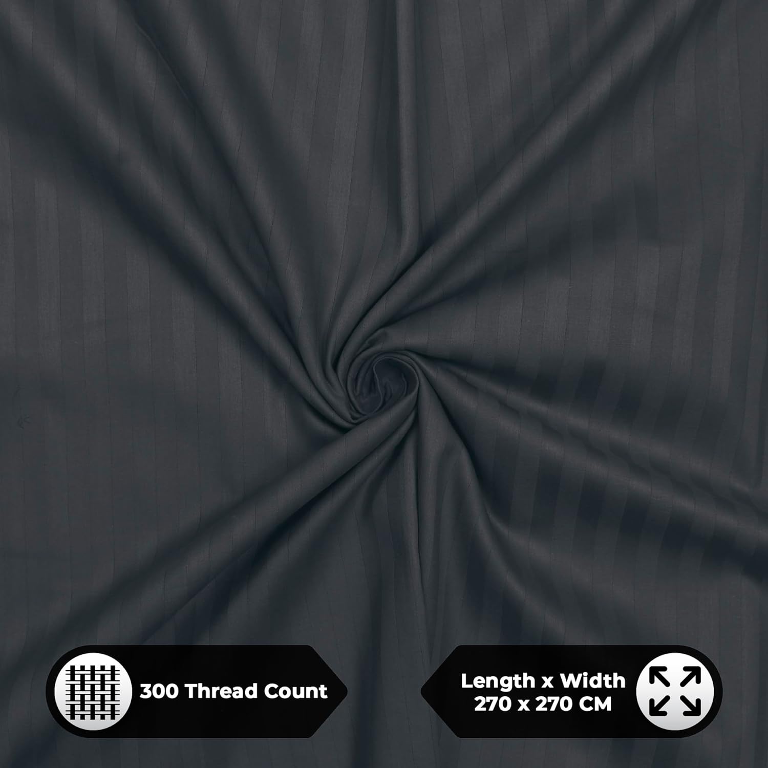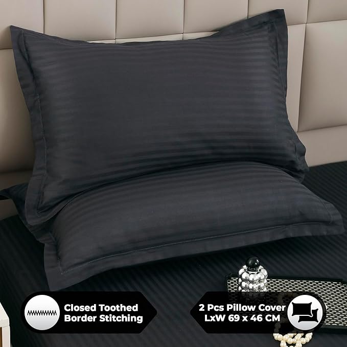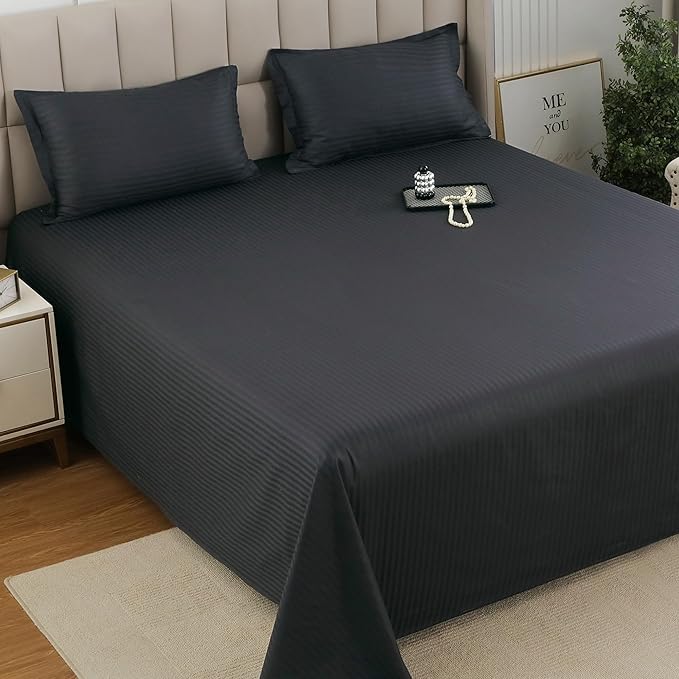 WSOKO 100% Cotton Bedsheet for Queen Bed Size | Bedding Set of 3 Piece 1-Flat Sheet 2-Pillow Cover | 300TC Super Soft, Breathable & Luxurious Comfort Bed Sheet & Pillowcases | Black Stripe