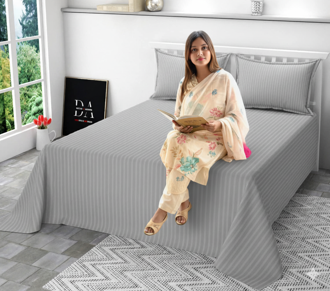 WSOKO 300 TC 100% Cotton Satin Stripe Single Bed Sheet - Premium Hotel Bedsheet and 2 Pillow Covers Set for Hotels, Guest House & B&B (108"X108"