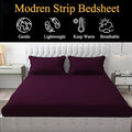 WSOKO 300 TC Cotton Plain Stripe Queen Size Double Bedsheet for Double Bed with Two Pillow Covers (Queen, Violet) (90 * 100 Inches)