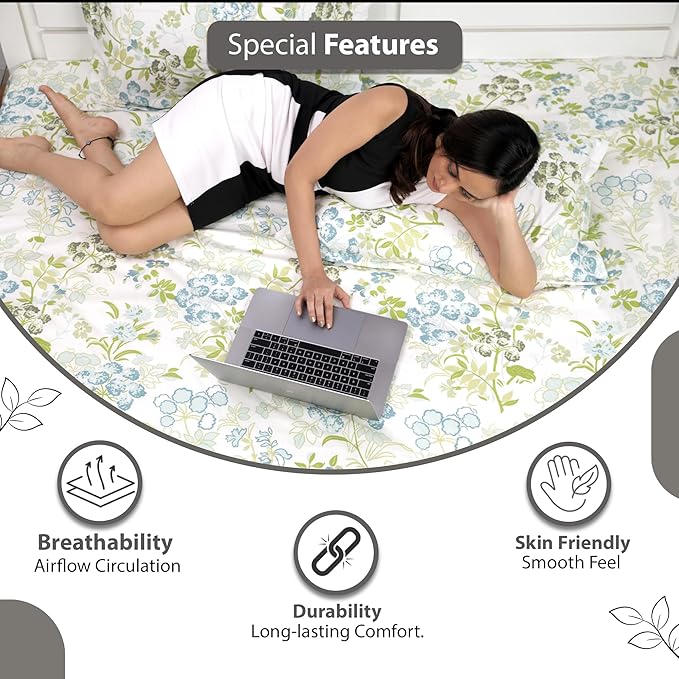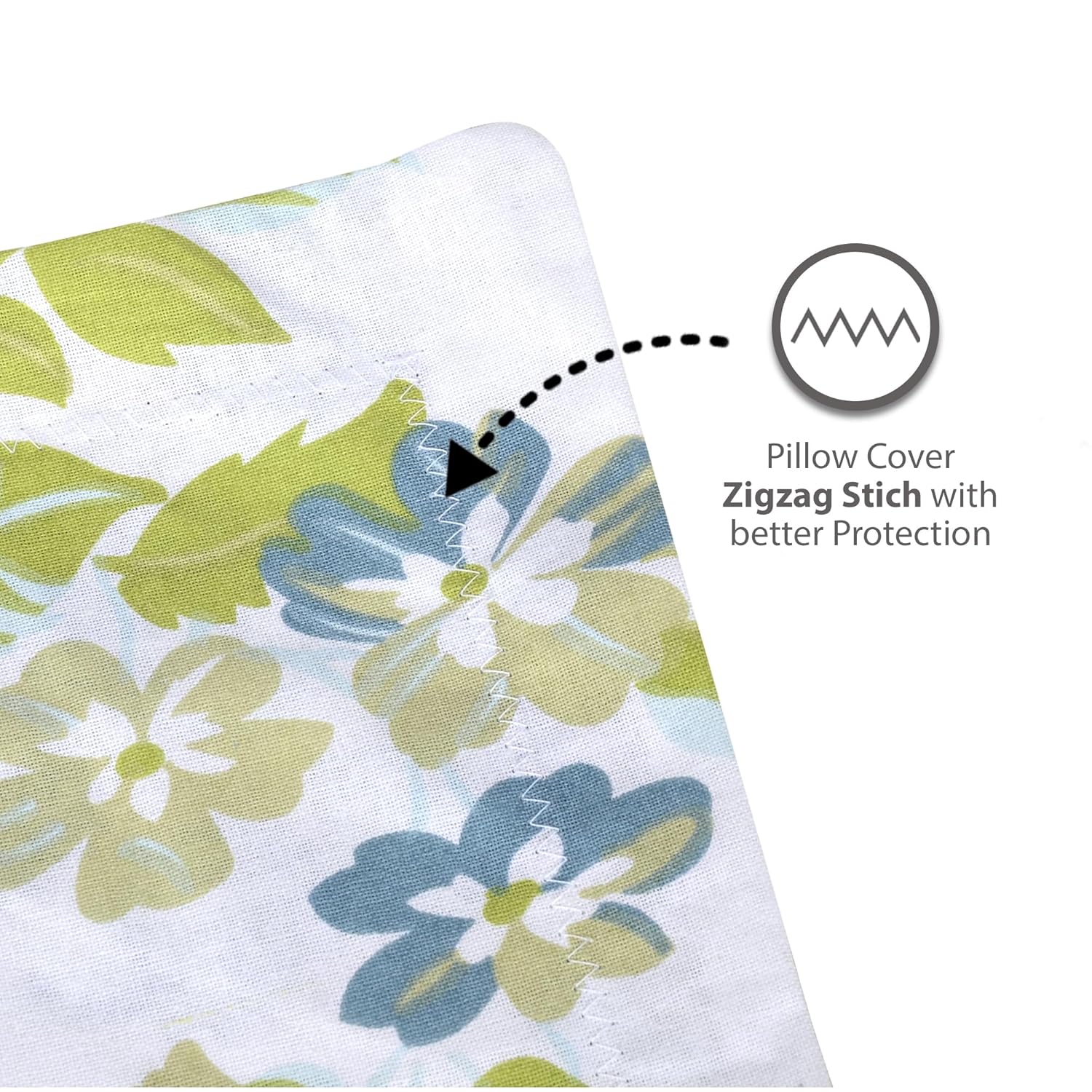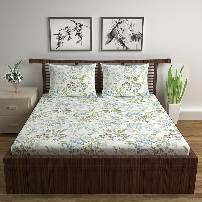 WSOKO COTTON 400 TC Cotton Bedsheet for Double Bed | 100% Cotton – Sage Green Floral Print | Soft & Breathable | Size 222 x 254 cm | with 2 Pillow Covers | Everyday Use 90X100
