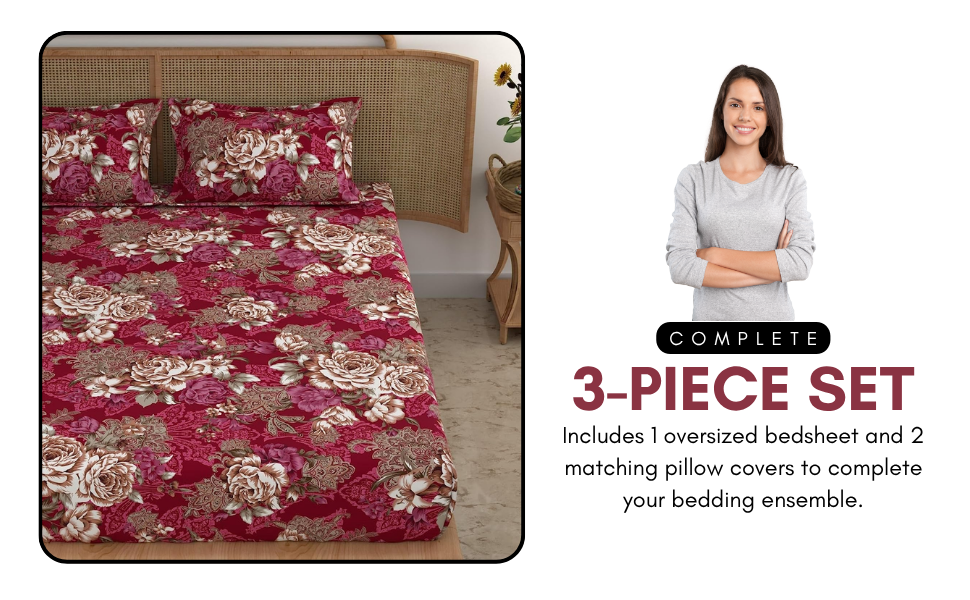 - Bedsheets for King Size Bed- The bedsheet (flat) measures 108 × 108 inches, perfectly accommodating standard king mattresses with ample drape. Two pillow covers (27 × 17 inches) are included for a coordinated bedroom look. This trusted Haus & Kinder set offers shrink‑resistant and fade‑resistant features, maintaining its vibrant patterns and fit through countless washes.