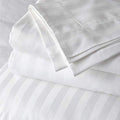 WSOKO COTTON 90X100 White Double Bed Striped Bedsheet 400 TC Cotton Satin Plain for Queen Size with Two Pillow Covers for Home-Hotels-Guest House-OYO Rooms
