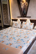 WSOKO Cotton Bedsheet with 2 Pillow Covers Soft Breathable 90 x 100 Inch Printed Flat Queen Size Bed Sheet - Tana Gree