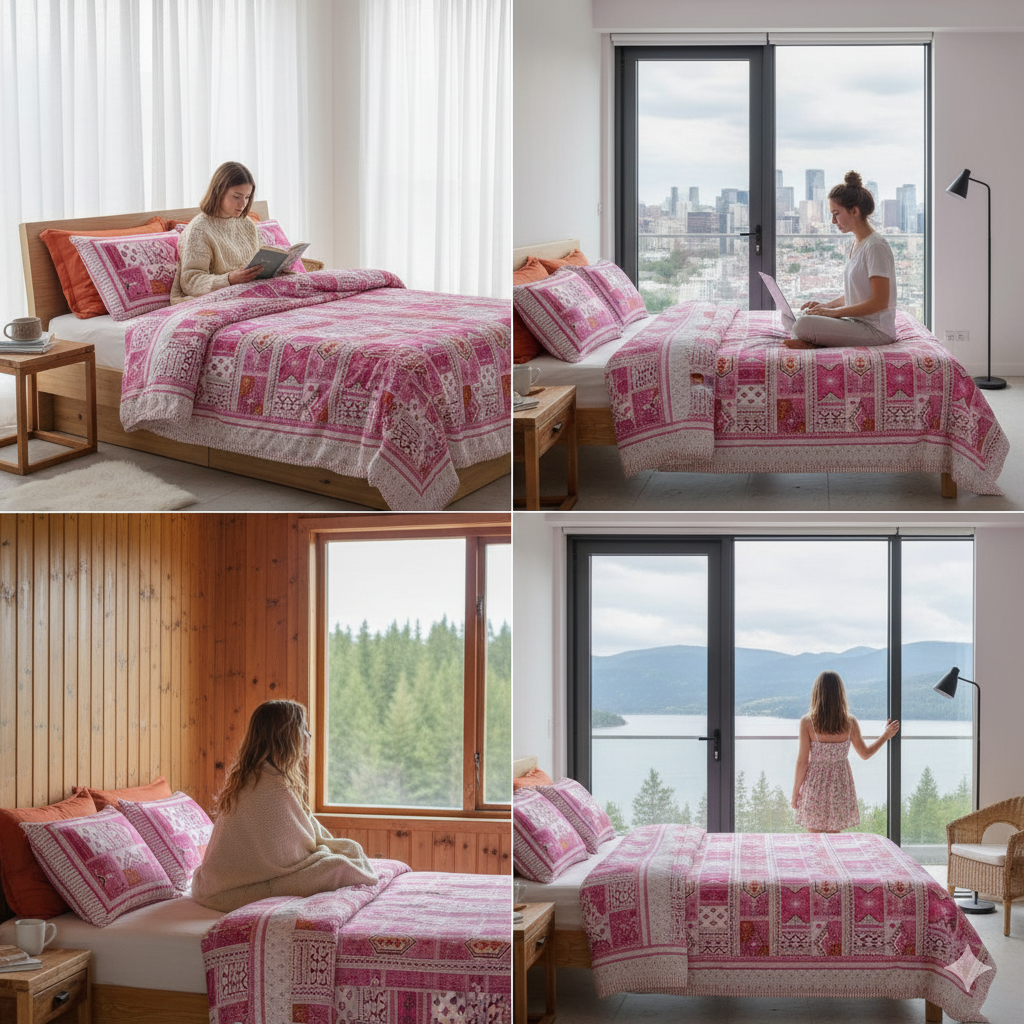 WSOKO COTTON Jaipur Weaves Bedsheet King Size 100% Pure Cotton 400TC Bed Sheet with 2 Pillow Covers, Super Soft Cozy Bedsheets Set,108x108 inches/ 9ftx9ft (Floral  Super King)