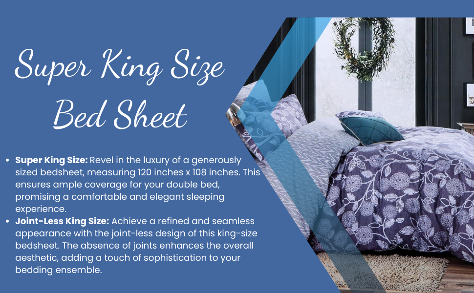 - Package Contents : 1 King size flat printed bedsheet and 2 Pillow Covers.