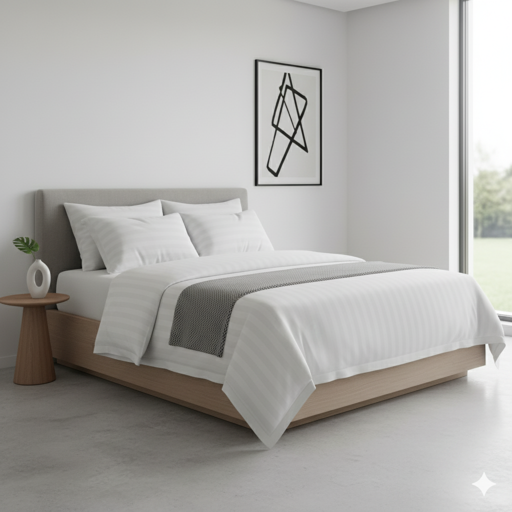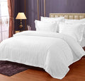 WSOKO COTTON Plain Satin Stripes Microfiber AC Comforter Set King Size with 1 Double Bed Sheet and 2 Pillow Covers 90 x 100 Inch for Home & Hotels - White, 400 TC