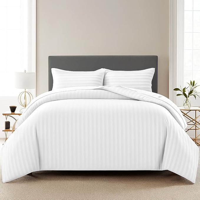 WSOKO Home Linen Zippered 100% Cotton 200 TC Satin Stripe Queen Duvet Cover Quilt Cover Razai Comforter Cover with 2 Pillow Covers bedsheet(Queen 90 x 102 inch, White) 4 set