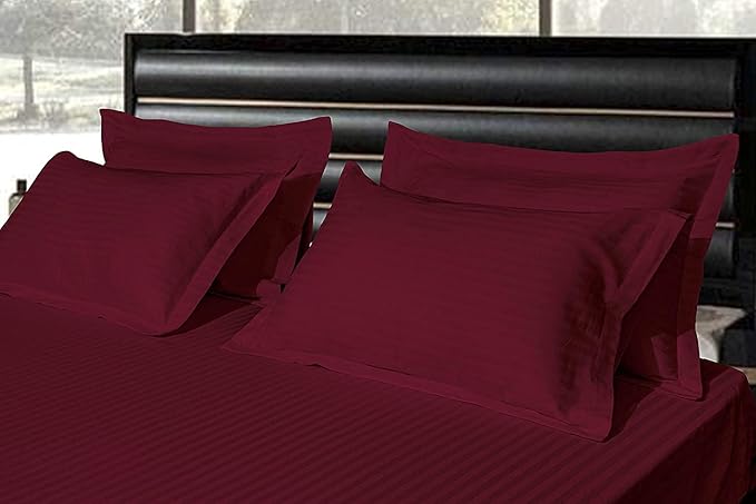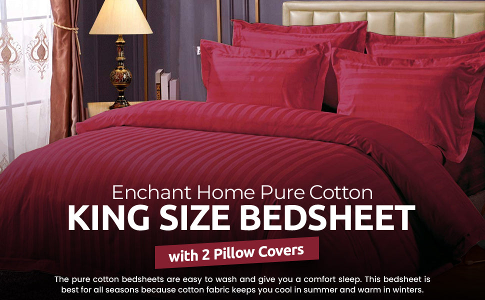 WSOKO Home Pure Cotton Bedsheet | King Size Bedsheet with Two Pillow Covers | Luxury Comfort 400 TC | Cotton Bed Cover with Satin Strip (Maroon) 108X108 SIZE