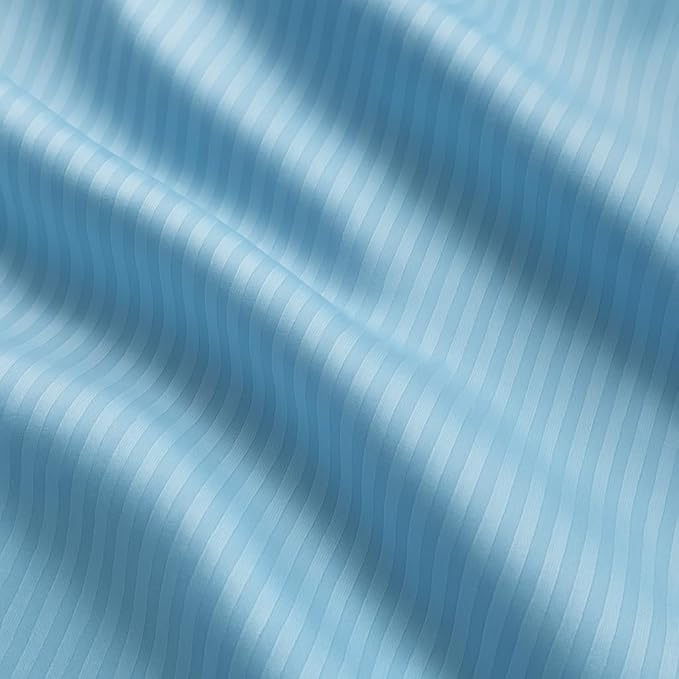 WSOKO Microfiber Satin Stripe 400 TC King Size 4Pc AC Comforter Set for Double Bed with 1 Flat Bedsheet and 2 Pillow Covers - Lightweight for All Weather/Season - 90x100 Inches, Aqua Blue