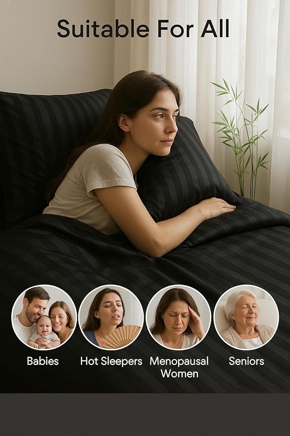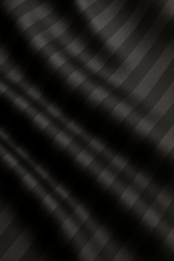 WSOKO Microfiber Satin Stripe 400 TC King Size 4Pc AC Comforter Set for Double Bed with 1 Flat Bedsheet and 2 Pillow Covers - Lightweight for All Weather/Season - 90x100 Inches, Black