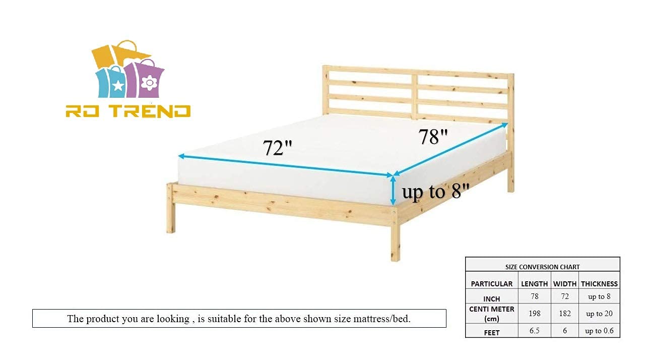 - King Size All Over Elastic Fitted Bedsheet -: 72 inches x 78 inches x 8 inches (182 cm x 192 cm x 20 cm) King-Size 2 Pillow Covers: 18 inches x 28 inches or 46 cm x 71 cm