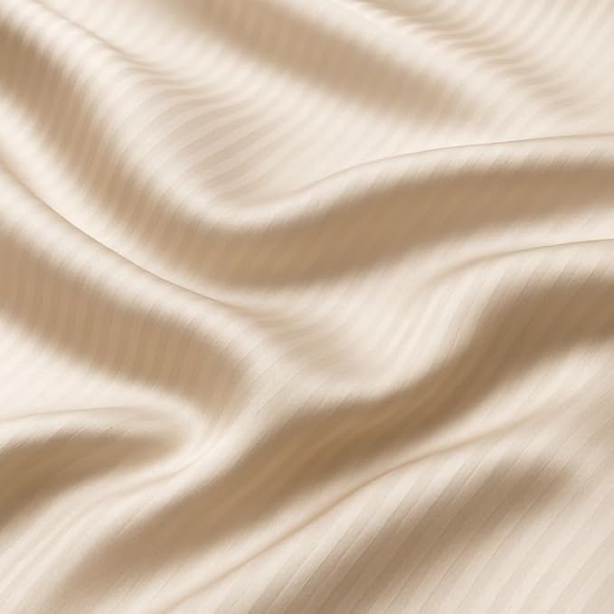 WSOKO Satin Stripe 400 TC King Size 4Pc AC Comforter Set for Double Bed with 1 Flat Bedsheet and 2 Pillow Covers - Lightweight for All Weather/Season - 90x100 Inches, Beige