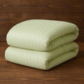 WSOKO Satin Stripe 400 TC King Size 4Pc AC Comforter Set for Double Bed with 1 Flat Bedsheet and 2 Pillow Covers - Lightweight for All Weather/Season - 90x100 Inches, Green